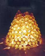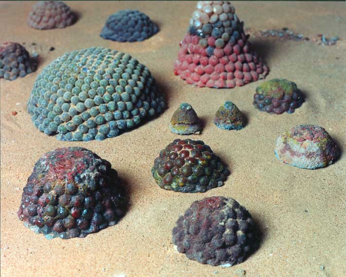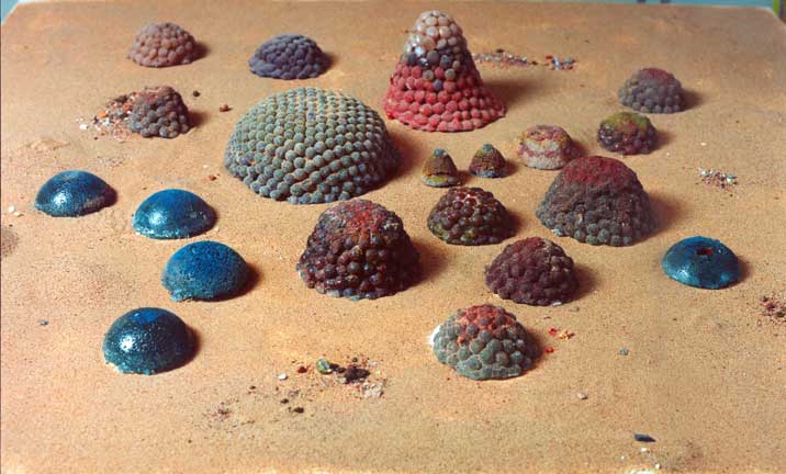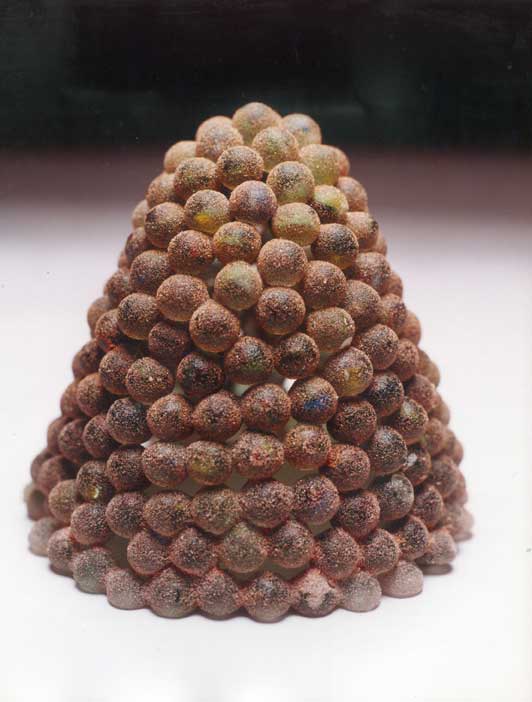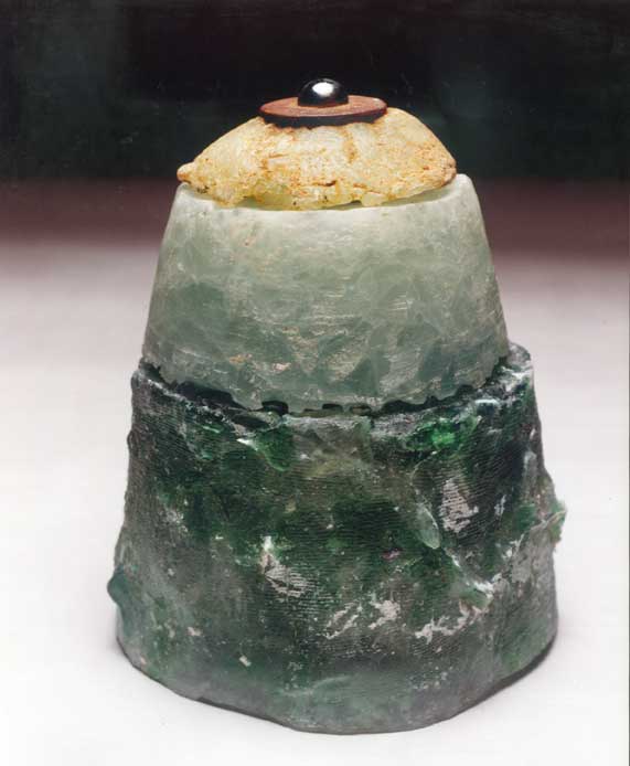 Esculturas en pasta de vidrio, fundición de vidrio molido en moldes de material refractario a partir de un original en arcilla o cera de escultor.